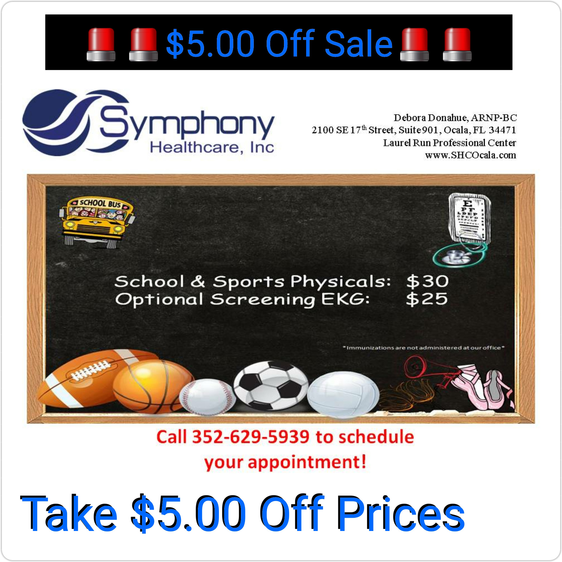 Ocala, Florida — Symphony Healthcare, Inc., located at 2100 SE 17th Street, Suite 901, Ocala, is now offering back to school and sports physicals for $30.00.