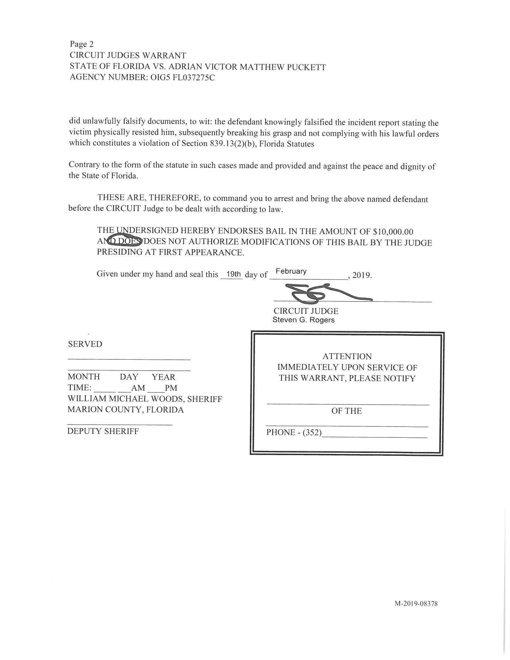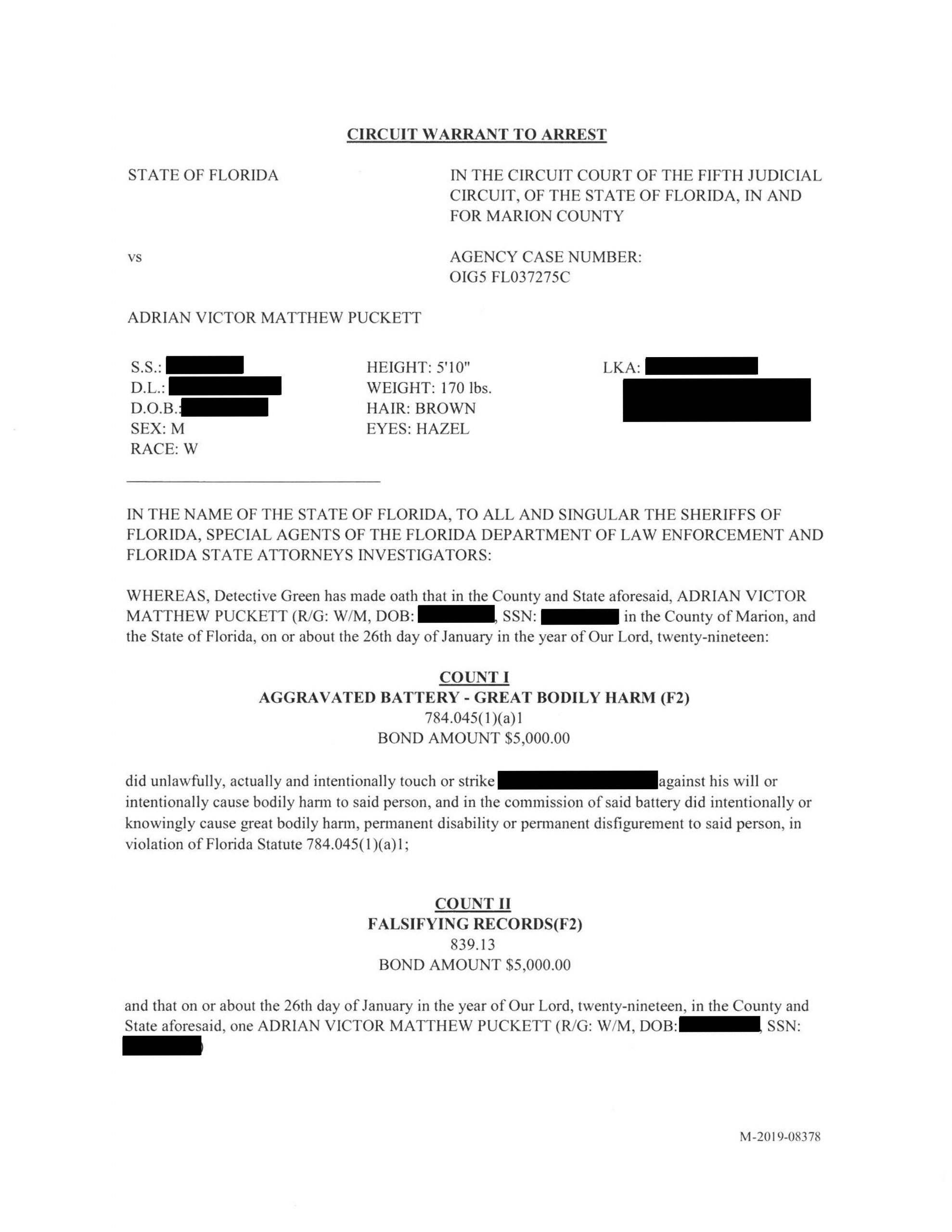 The Marion County Sheriff’s Office refused to release Puckett’s booking photo.
