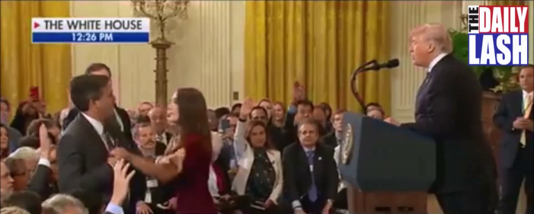 CNN reporter Jim Acosta attempts to roust President Donald Trump